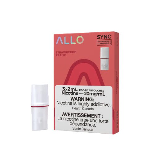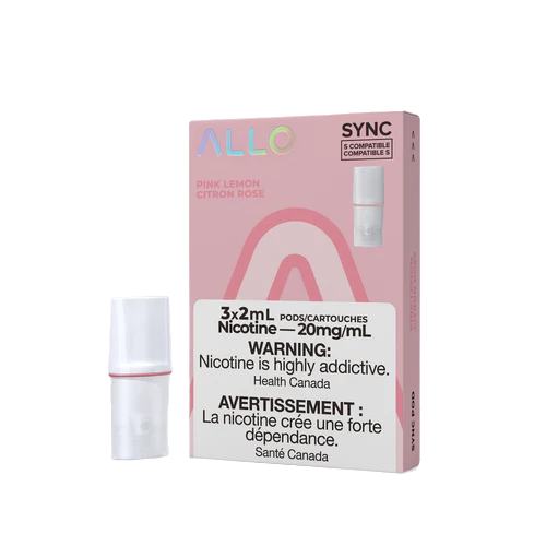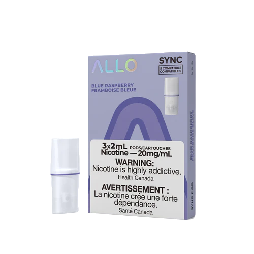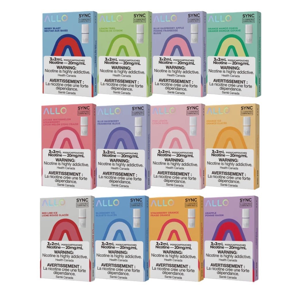 ALLO Sync Pods are pre-filled ejuice pods designed with simplicity in mind. when paired with an ALLO Sync device, or any “S compatible device” ALLO Pods offer everything you need to vape. No refilling pods, changing coils, or carrying e-liquid bottles, when the ALLO Sync Pod is empty, simply replace it with a new one. ALLO Sync Pods accommodate 2ml of premium e-liquid per pod, and come in a package of 3 pods. plus they are made in over 40 flavours, with 20mg nicotine strength.