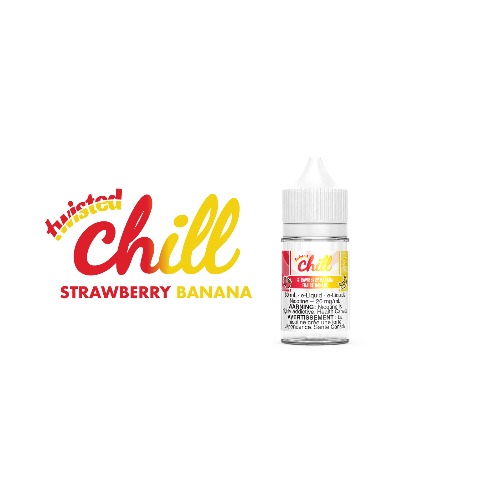 Strawberry Banana – Chill Twisted Salt: A delicious mixture of juicy strawberries and creamy bananas, perfectly intertwined to create a sweet and satisfying vaping experience.