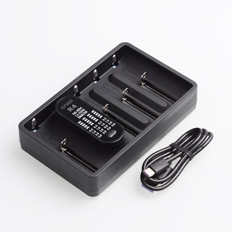 Charge your batteries with the Efest iMate R4 Charger. The Efest iMate R4 Charger is a quad slot charger which can charge up to one single 18650 battery at a fast 3.0A charging rate or up four 18650 batteries at a 1.0A charging rate.