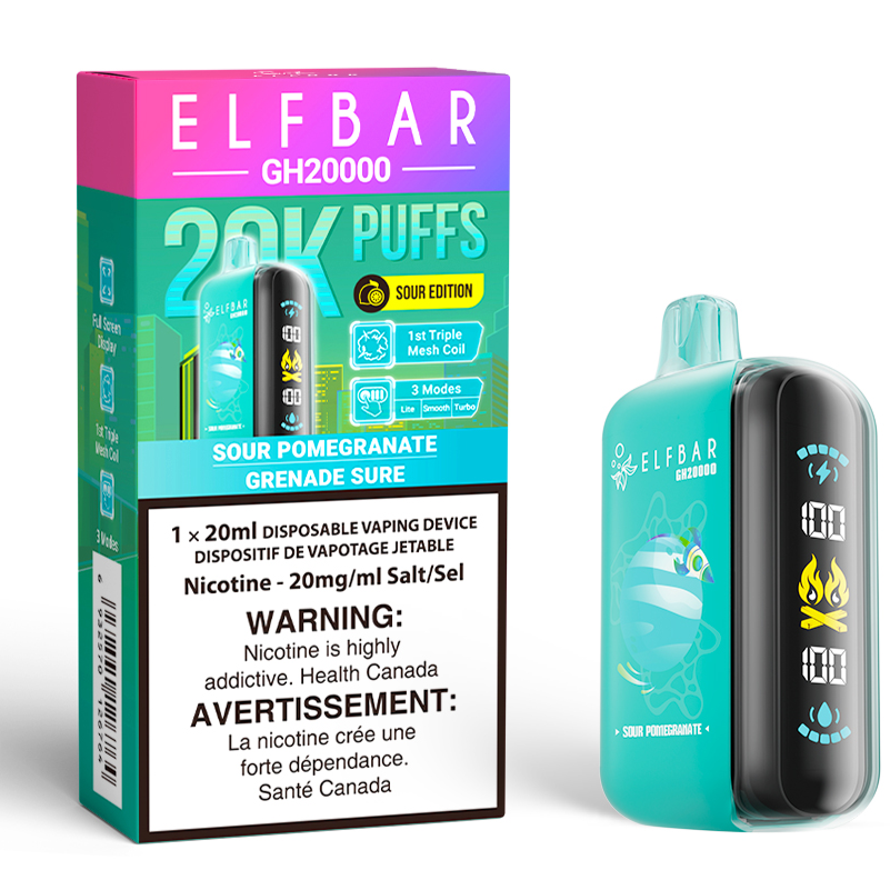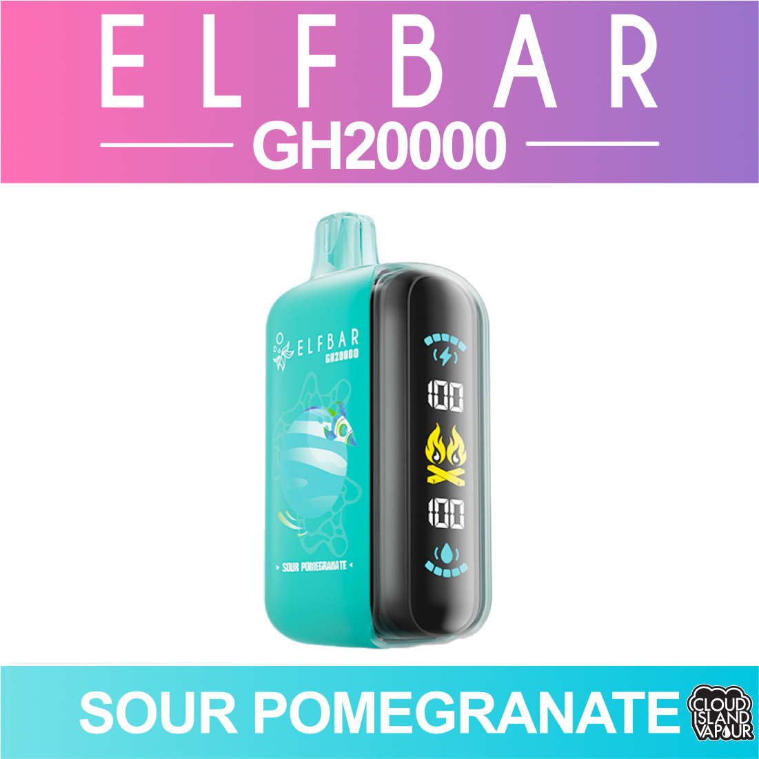Sour Pomegranate by ELF BAR GH20000: Dive into the exotic allure of Sour Pomegranate by ELF BAR GH20000, a flavour bursting with juicy richness and tangy sourness. The luscious sweetness of ruby-red pomegranate is complemented by a sharp, zesty edge, creating a bold and vibrant taste experience. Perfect for those who love a fruity vape with a refreshing sour kick, Sour Pomegranate by ELF BAR GH20000 is sure to become a favourite.