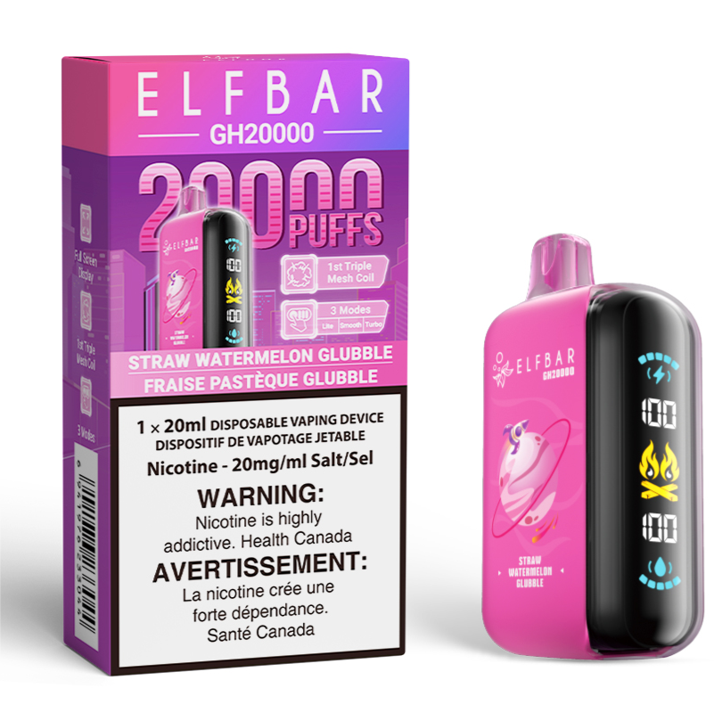Straw Watermelon Glubble by ELF BAR GH20000: Indulge in the delightful Straw Watermelon Glubble by ELF BAR GH20K, a fusion of strawberry and watermelon flavours mixed with a chewy and sweet treat. This flavour offers the juicy sweetness of ripe strawberries seamlessly blended with the refreshing, watery notes of succulent watermelon, creating a playful and satisfying experience. Perfect for those with a sweet tooth, Straw Watermelon Glubble by ELF BAR GH20K delivers a burst of joy with every puff, making it an irresistible choice for vape enthusiasts.