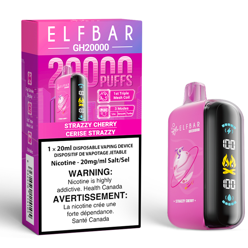 Strazzy Cherry by ELF BAR GH20000: Get ready for a sweet sensation with Strazzy Cherry by ELF BAR GH20000, a delectable blend of juicy cherries and luscious strawberries. This fruity duo delivers a perfectly balanced flavour profile of sweetness and richness, with a hint of tartness that keeps every puff exciting. Smooth, flavourful, and bursting with character, Strazzy Cherry by ELF BAR GH20000 is the perfect pick for fruit lovers.