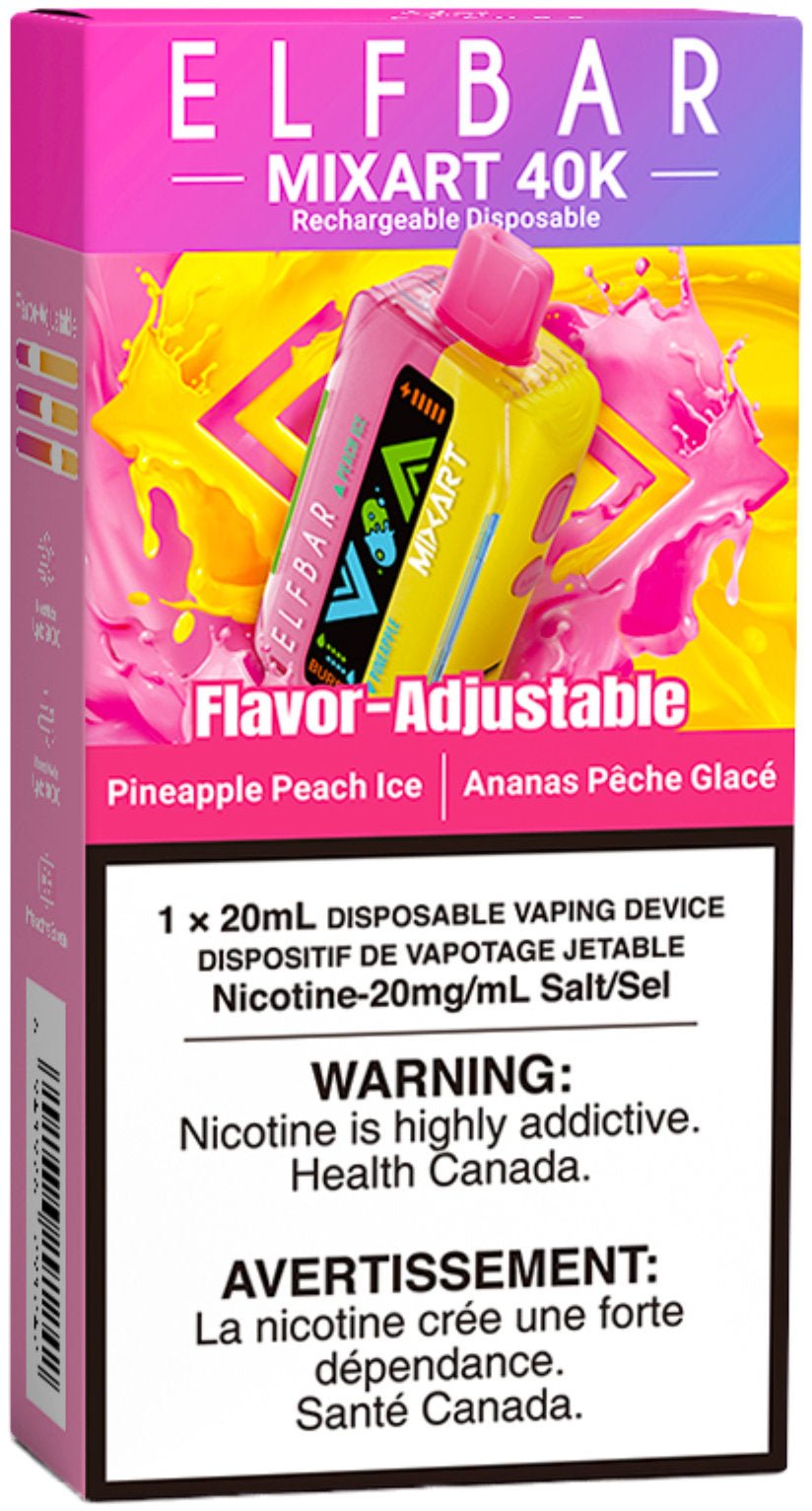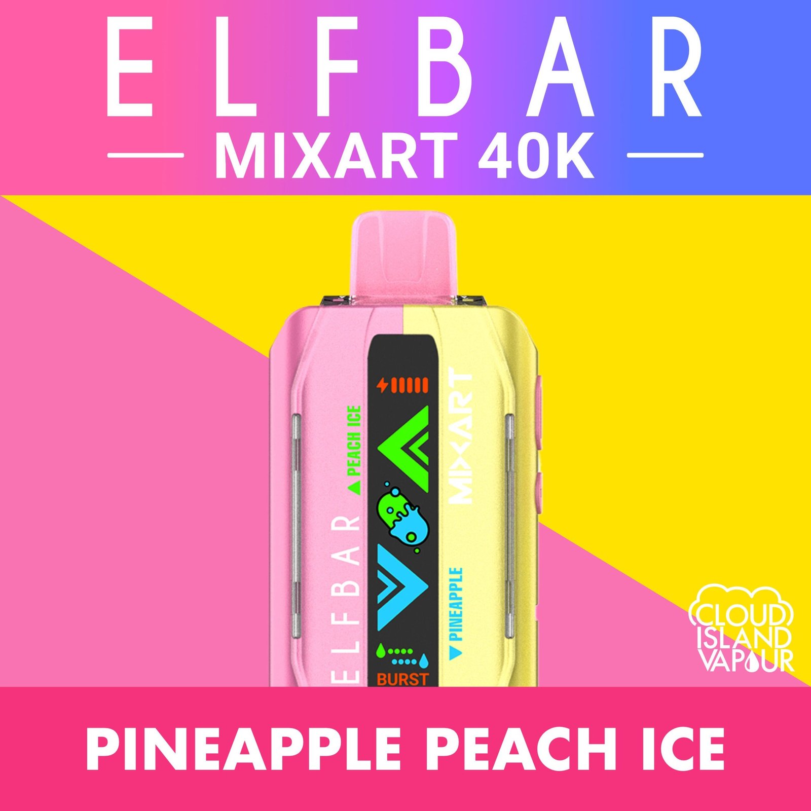 Pineapple Peach Ice by ELF BAR MIXART 40K: Exotic and smooth, Pineapple Peach Ice by ELF BAR MIXART 40K is a tropical delight that balances vibrant fruitiness with a cool edge. Juicy pineapple bursts forward with tangy sweetness, while ripe peach adds a velvety, mellow layer. A refreshing ice finish enhances the tropical duo, making it both invigorating and satisfying. With MIXART’s adjustable tanks, you can explore the sharp bite of pineapple, savour the juicy softness of peach, or blend them with icy precision.
