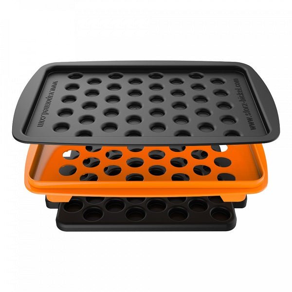 The Filling Set for 40 Dosing Capsules is designed for the simultaneous filling of a larger amount of Dosing Capsules with ground plant material. The included Plunger facilitates closing the Capsules additionally.