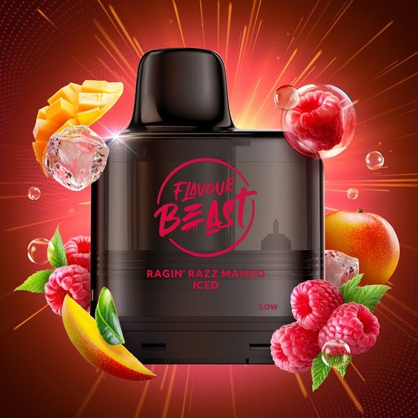Ragin’ Razz Mango Iced – This blend of wild raspberries and tropical mango hits you with a chilling twist, creating a frosty fusion that’s as bold as it gets. Get ready to chill with the coolest combo in town!