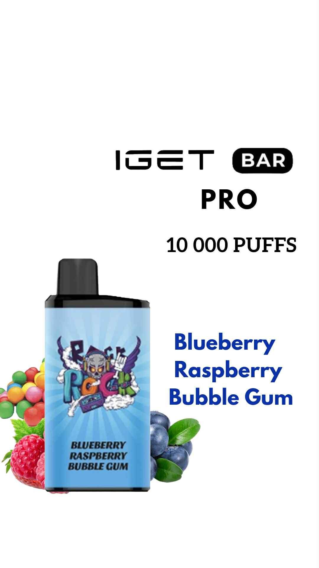 The IGET Bar Pro – BLUEBERRY RASPBERRY BUBBLE GUM is a premium disposable vape delivering an exceptional and flavorful experience with 10,000 puffs. This device combines the sweet, tart taste of cherries with the unique, juicy notes of pomegranate, creating a rich, layered flavor that’s both bold and refreshing. Each puff offers a balanced, fruity taste that’s ideal for those who enjoy vibrant flavors without an icy or minty twist.