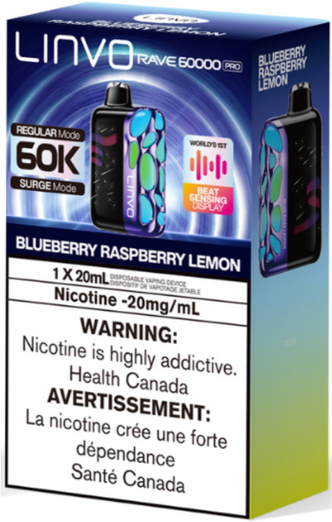 Blueberry Raspberry Lemon by Linvo Rave 60000 Pro: A zesty trifecta of fruity goodness, Blueberry Raspberry Lemon by Linvo Rave 60000 Pro combines plump blueberries, tart raspberries, and a splash of tangy lemon for a flavour profile that’s bright, bold, and perfectly balanced. It’s a sweet-and-sour symphony that dances on the palate.