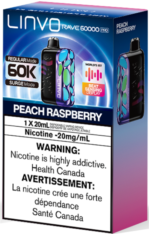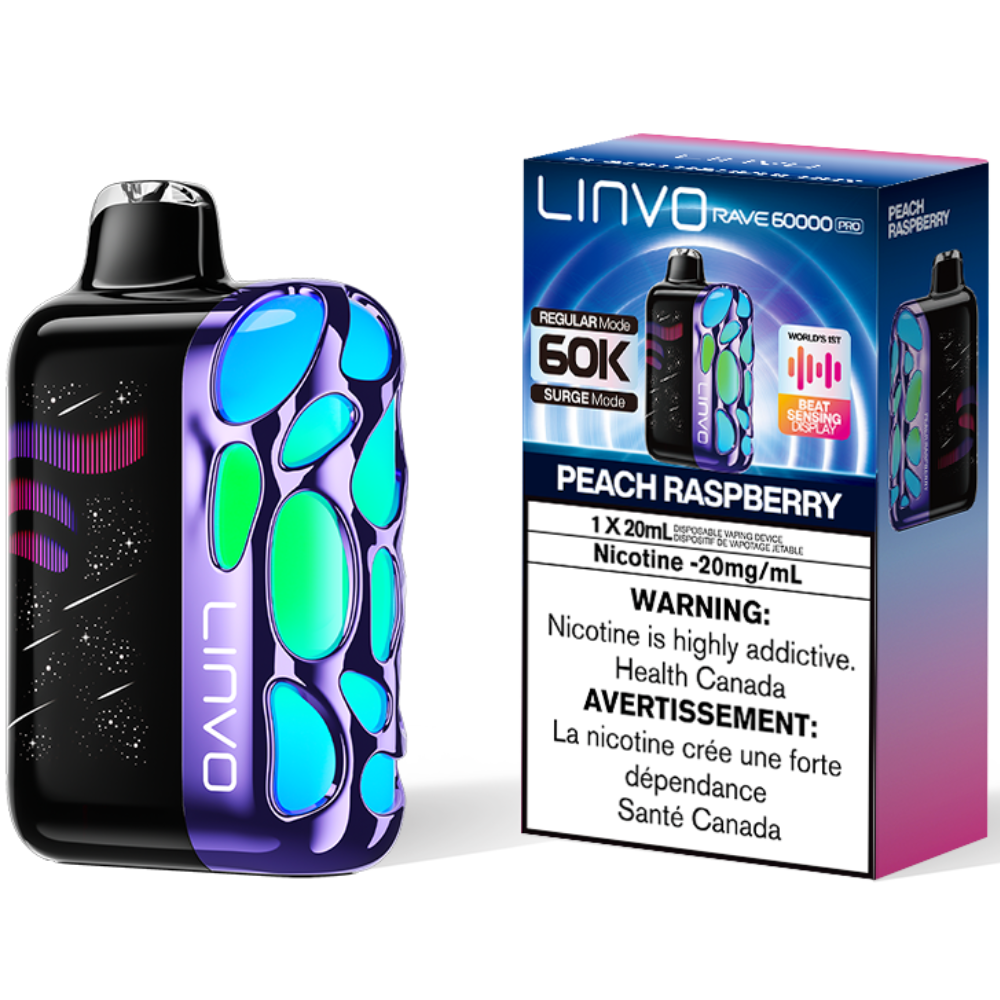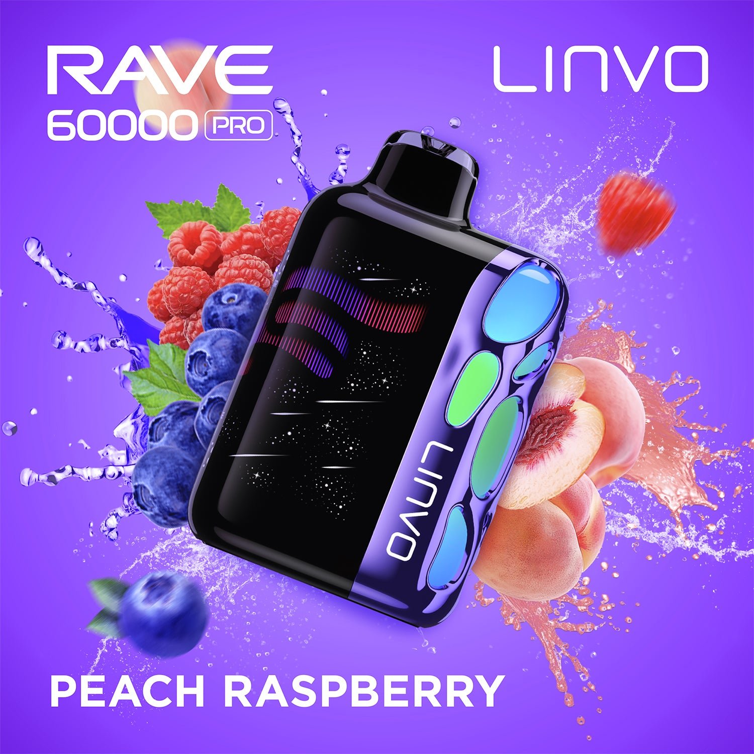 Peach Raspberry by Linvo Rave 60000 Pro: Sweet meets tangy in this mouth-watering fusion. Peach Raspberry by Linvo Rave 60000 Pro combines the succulent smoothness of peach with the sharp, berry-rich pop of raspberry. The result is a perfectly balanced flavour that’s juicy, vibrant, and irresistibly delicious.