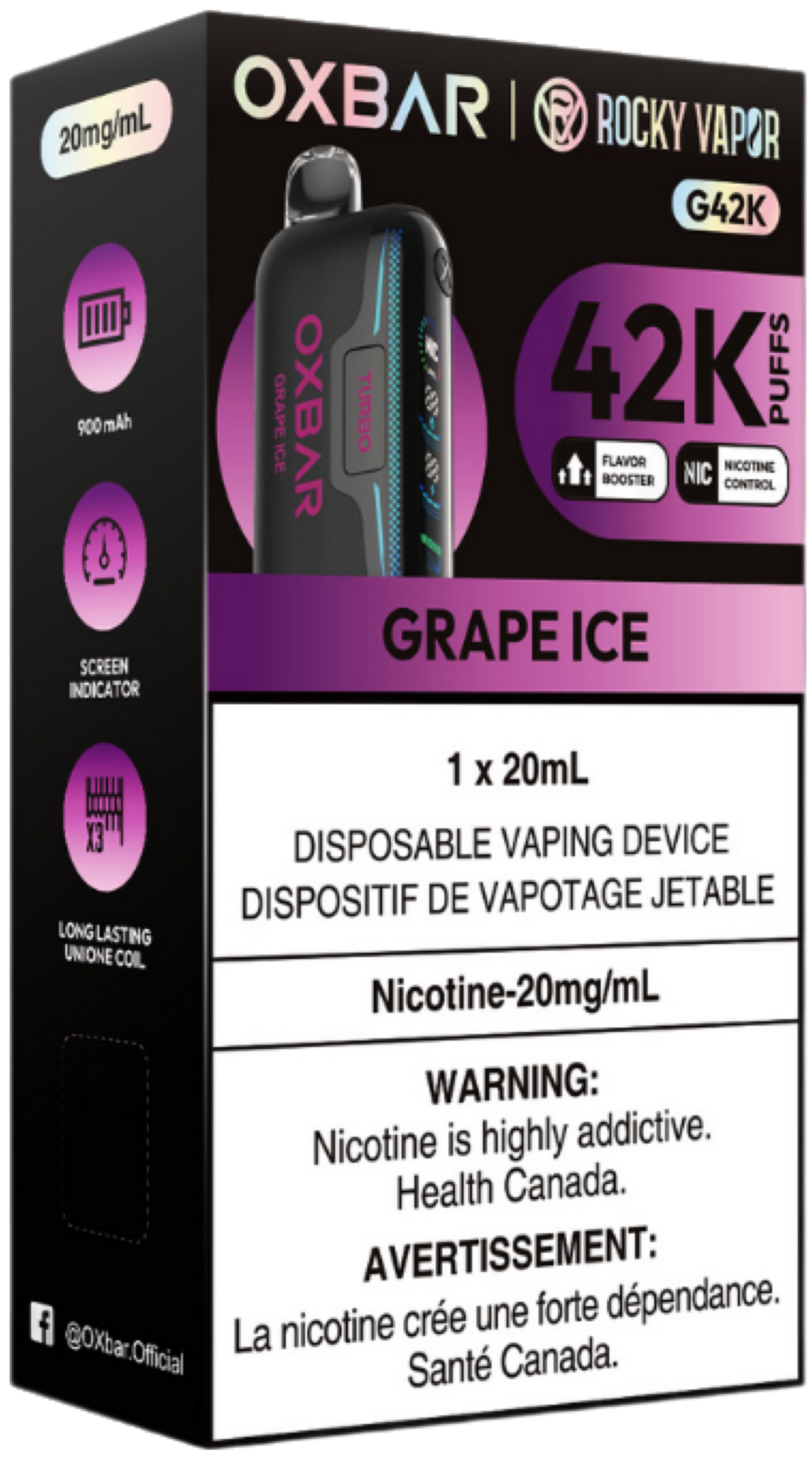 Upgrade your vape game today with the Rocky Vapor Oxbar G42K Disposable Vape—A device that’s engineered to impress and perform to the last puff.