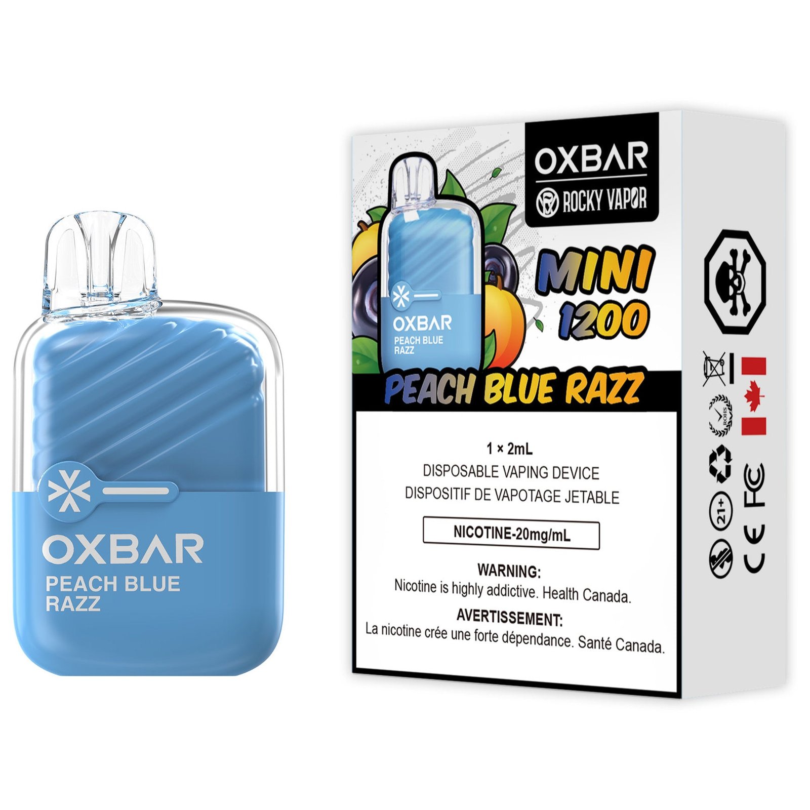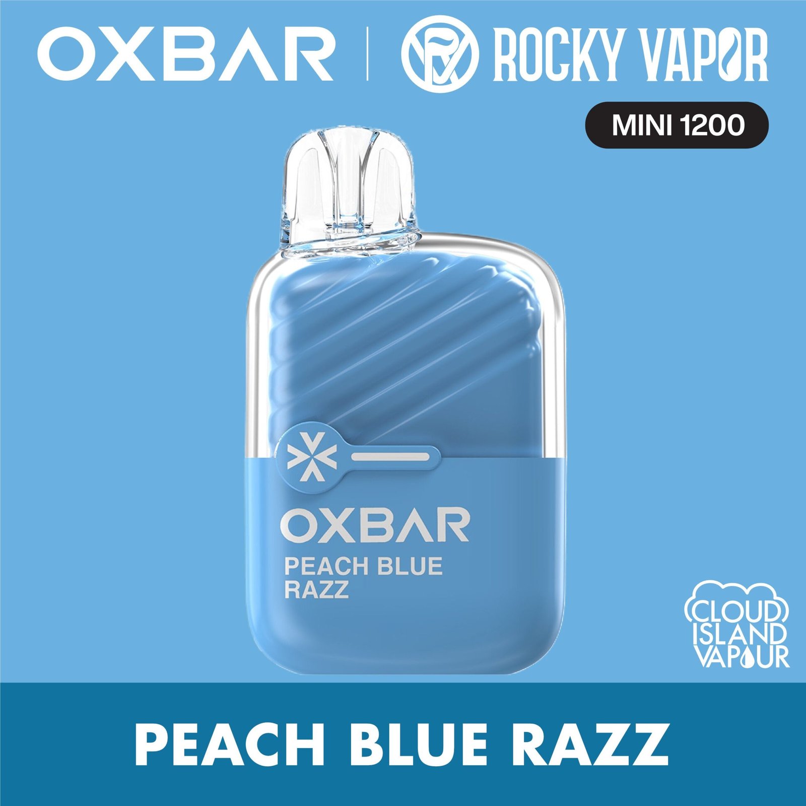 Peach Blue Razz by Rocky Vapor Oxbar Mini 1200: Juicy peach collides with bold blue raspberry in Peach Blue Razz by Rocky Vapor Oxbar Mini 1200. This flavour is a sweet-tart explosion of fruity brilliance, offering depth, zing, and a mellow finish.
