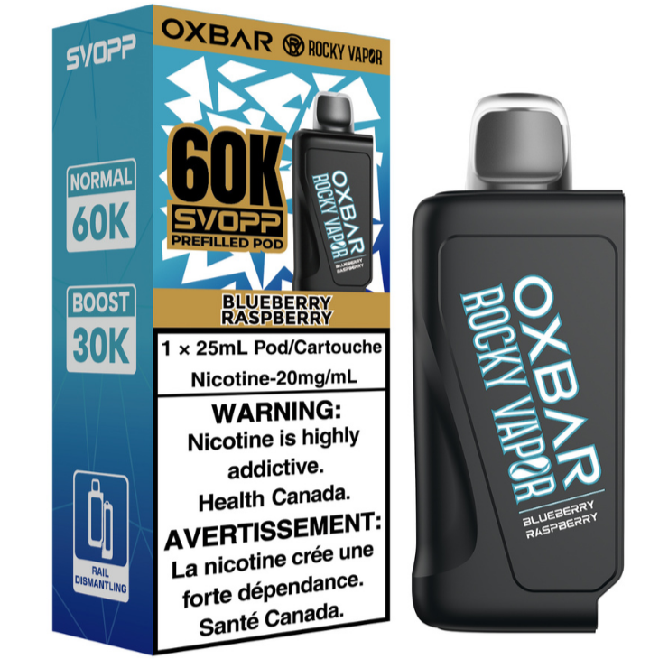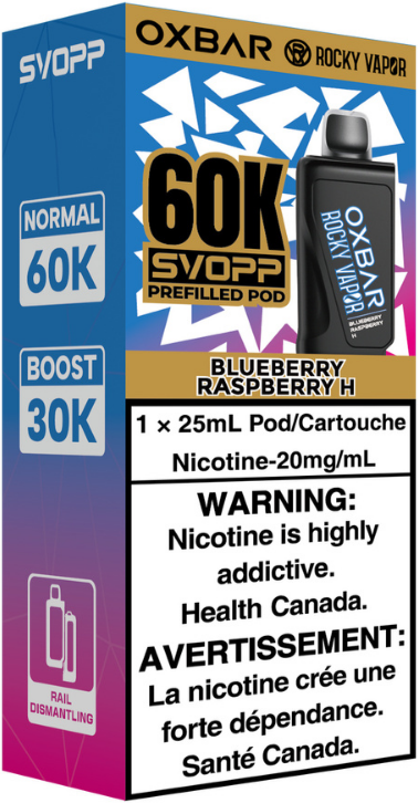 Blueberry Raspberry H by Rocky Vapor Oxbar Svopp 60K: Savour the harmonious mix of Blueberry Raspberry H by Rocky Vapor Oxbar Svopp 60K, where ripe blueberry sweetness meets the tart edge of raspberry, delivering a smooth yet lively fruit pairing.