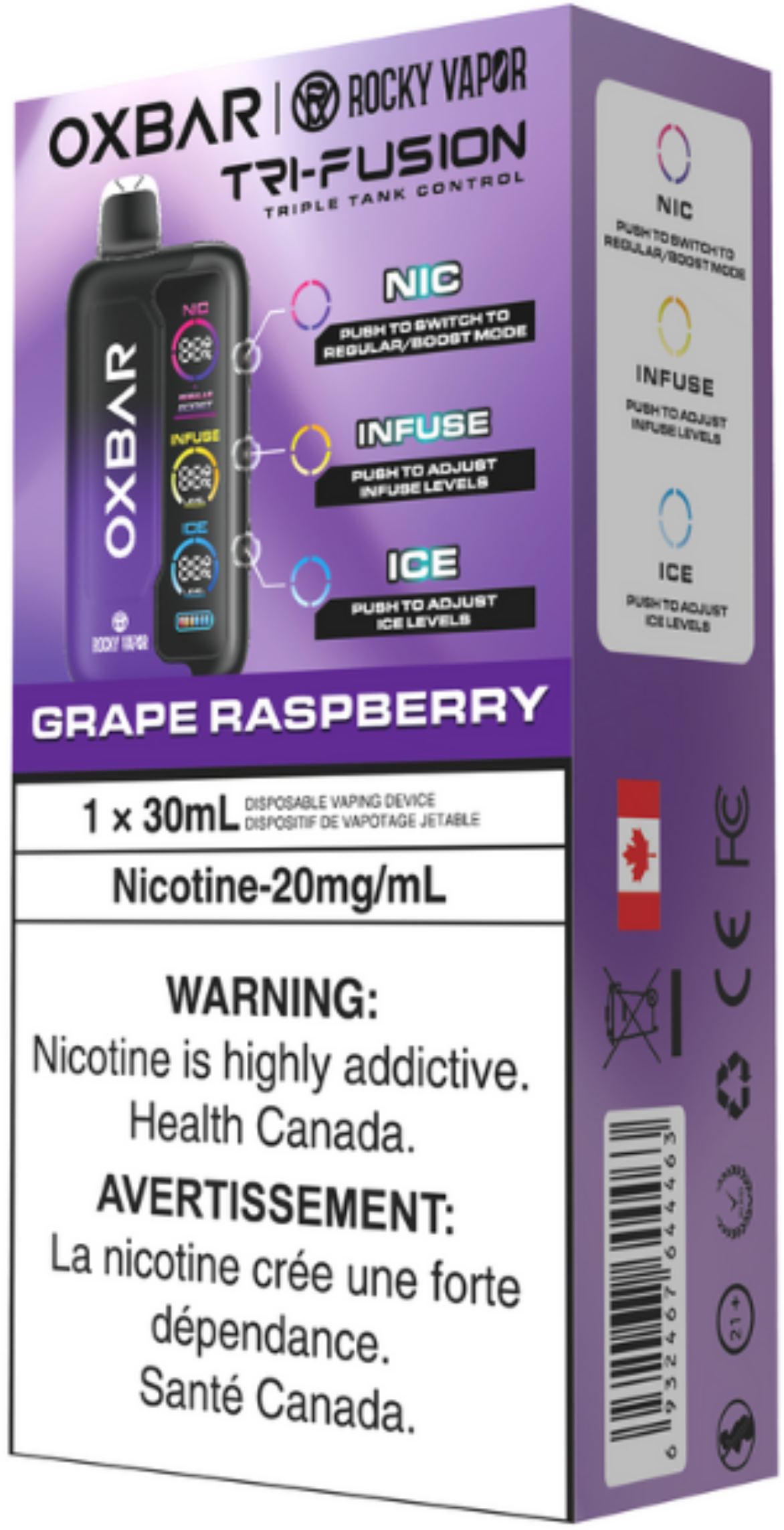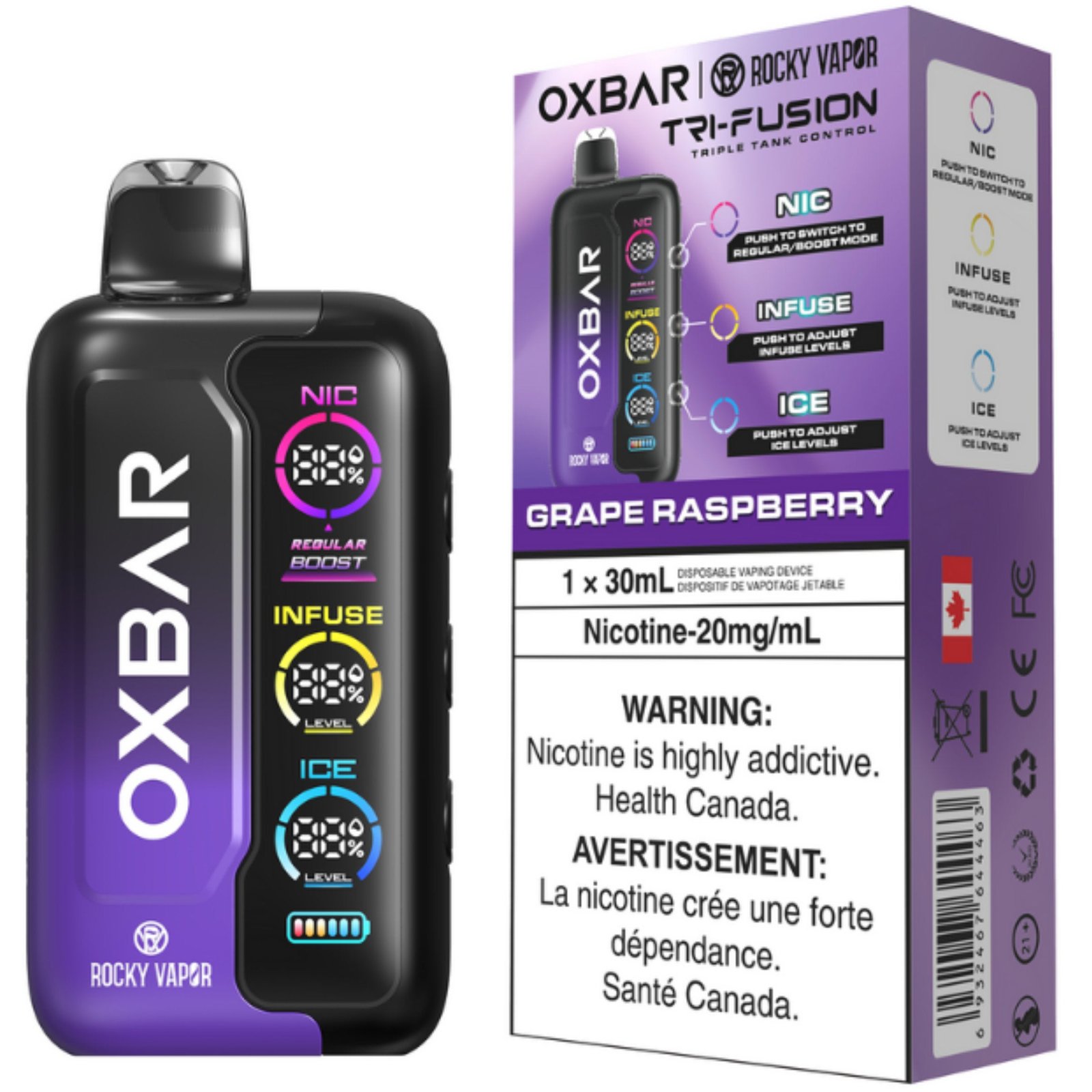 Rocky Vapor Oxbar Tri Fusion Disposable Vape – Grape Raspberry