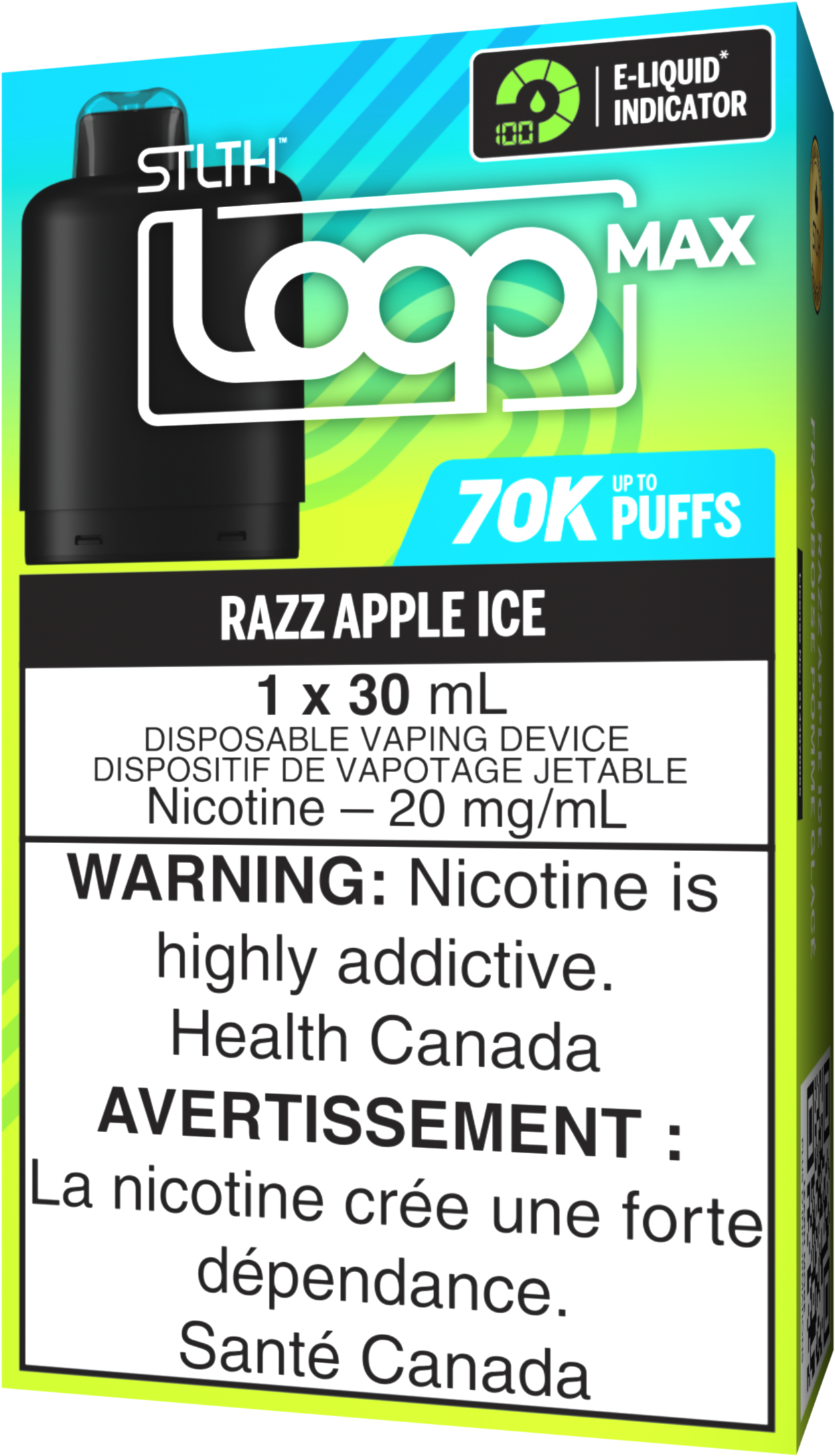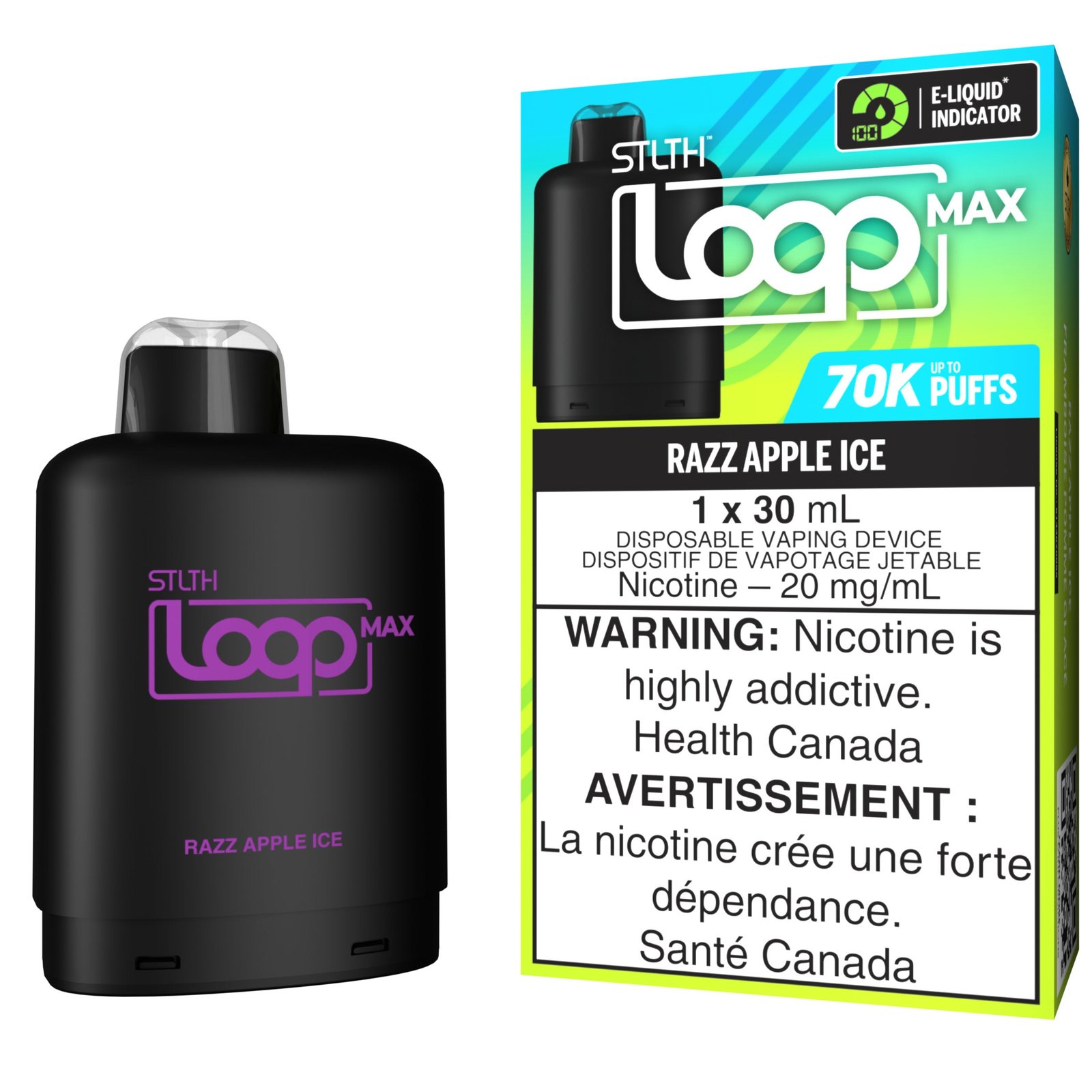 Razz Apple Ice by STLTH LOOP MAX: An electrifying blend of tart blue raspberries and crisp green apples, finished with a cool menthol kick. The contrast between tangy, juicy fruit and refreshing ice makes Razz Apple Ice by STLTH LOOP MAX a bold and satisfying choice.