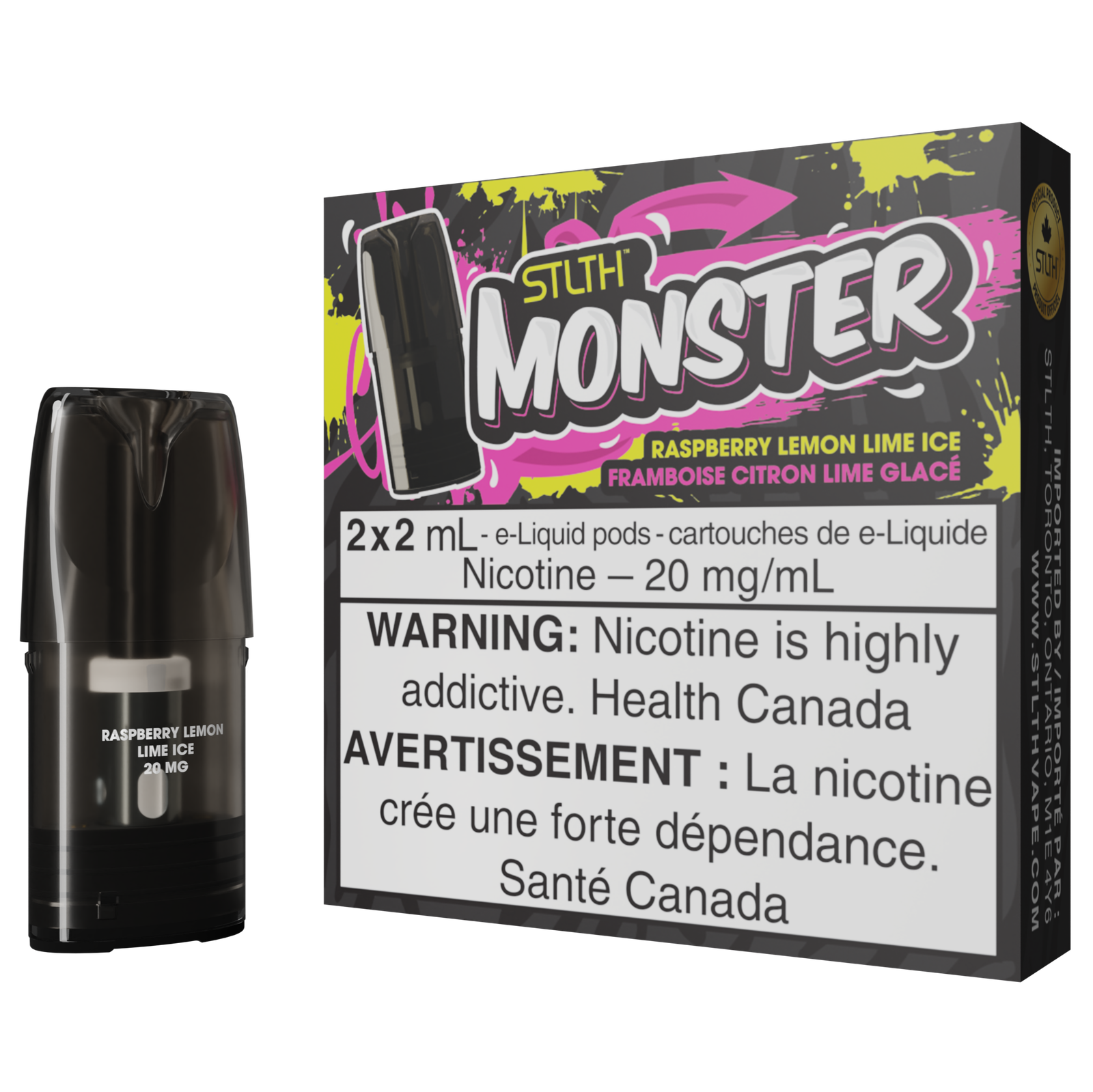 Each STLTH Monster Pod comes pre-filled with 2.0ml of premium e-liquid and there are two Pod cartridges in every package.