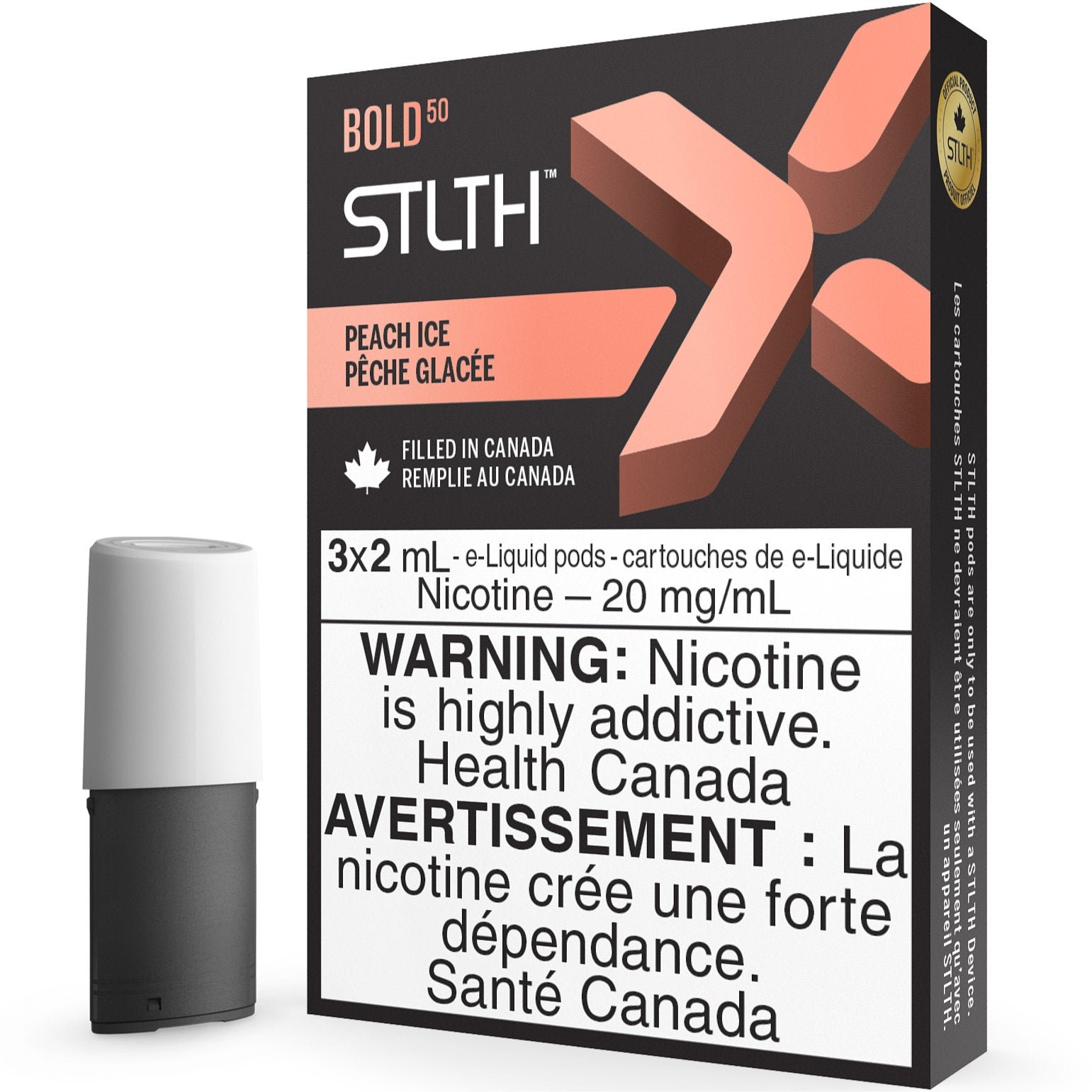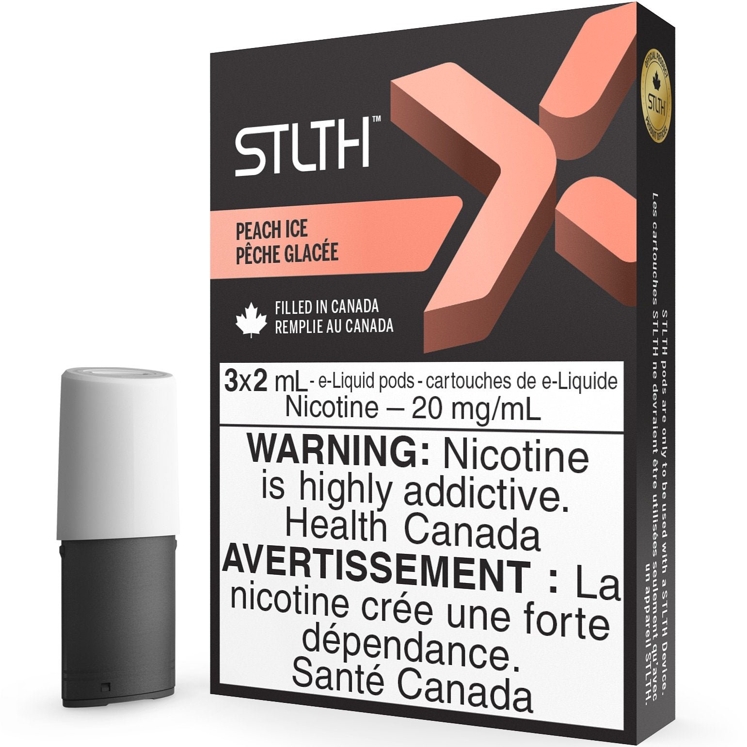 Proudly filled in Canada, STLTH X Pods adhere to stringent quality control and safety standards, reflecting a commitment to excellence. The user-friendly, closed-pod system eliminates the hassle of refilling and coil replacements—simply insert a new STLTH X Pod into your STLTH Type-C Device and indulge in a hassle-free vaping experience.